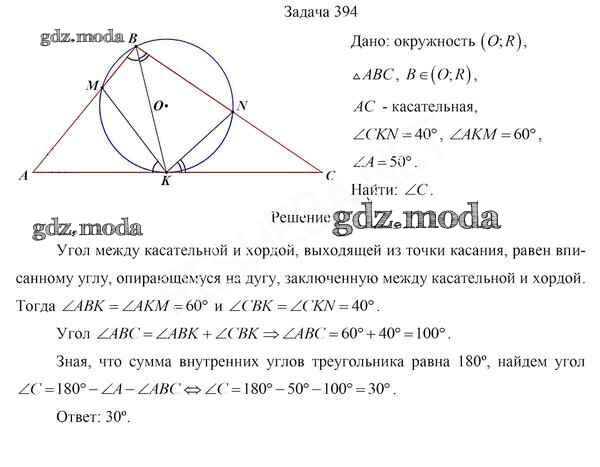 ОТВЕТ на задание № 394 Учебник по Геометрии 8 класс Казаков