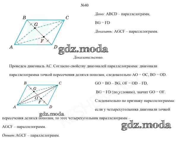 ОТВЕТ на задание № 40 Учебник по Геометрии 8 класс Казаков