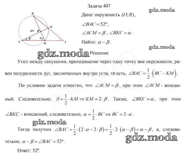 ОТВЕТ на задание № 407 Учебник по Геометрии 8 класс Казаков