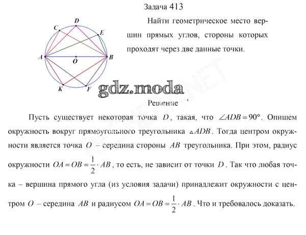 ОТВЕТ на задание № 413 Учебник по Геометрии 8 класс Казаков