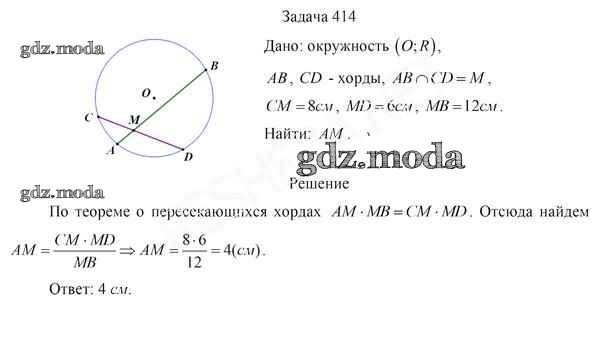 ОТВЕТ на задание № 414 Учебник по Геометрии 8 класс Казаков