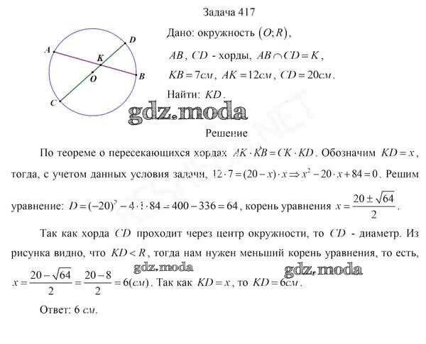 ОТВЕТ на задание № 417 Учебник по Геометрии 8 класс Казаков