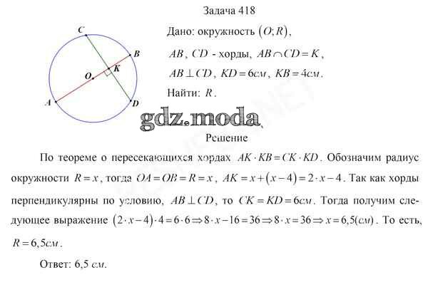 ОТВЕТ на задание № 418 Учебник по Геометрии 8 класс Казаков