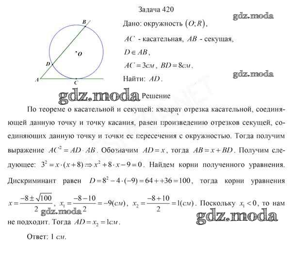 ОТВЕТ на задание № 420 Учебник по Геометрии 8 класс Казаков