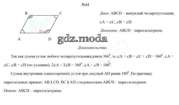 ОТВЕТ на задание № 44 Учебник по Геометрии 8 класс Казаков