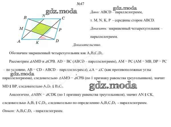 ОТВЕТ на задание № 47 Учебник по Геометрии 8 класс Казаков