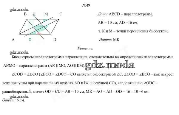 ОТВЕТ на задание № 49 Учебник по Геометрии 8 класс Казаков