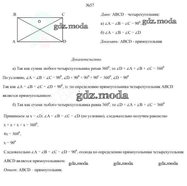 ОТВЕТ на задание № 57 Учебник по Геометрии 8 класс Казаков