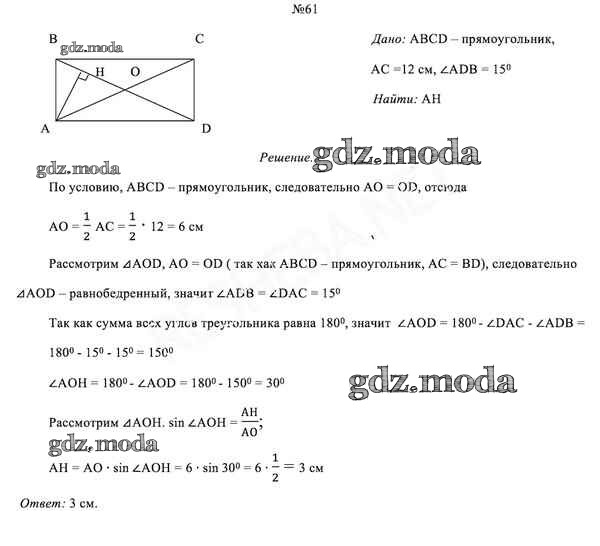 ОТВЕТ на задание № 61 Учебник по Геометрии 8 класс Казаков