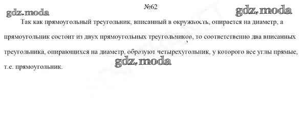 ОТВЕТ на задание № 62 Учебник по Геометрии 8 класс Казаков