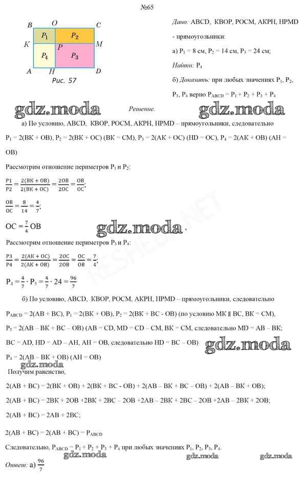 ОТВЕТ на задание № 65 Учебник по Геометрии 8 класс Казаков