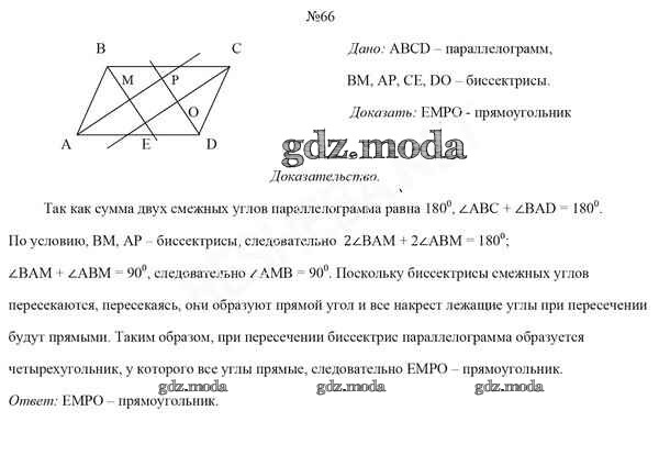 ОТВЕТ на задание № 66 Учебник по Геометрии 8 класс Казаков