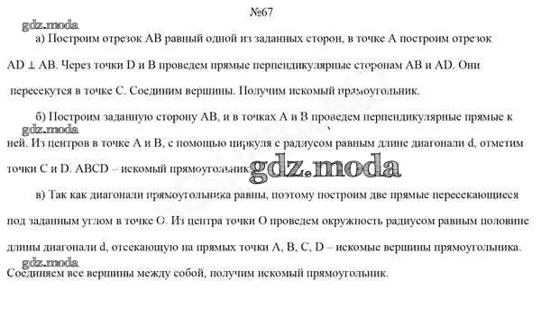 ОТВЕТ на задание № 67 Учебник по Геометрии 8 класс Казаков
