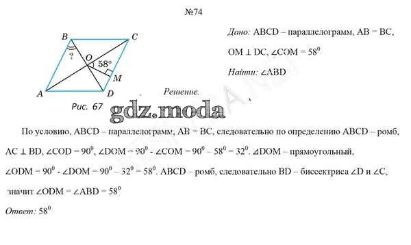 ОТВЕТ на задание № 74 Учебник по Геометрии 8 класс Казаков