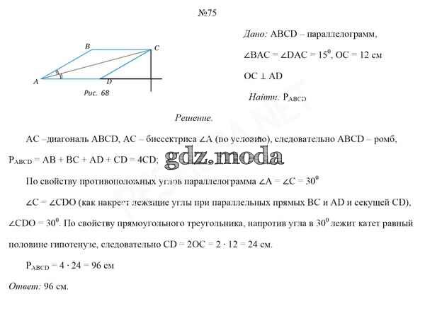 ОТВЕТ на задание № 75 Учебник по Геометрии 8 класс Казаков