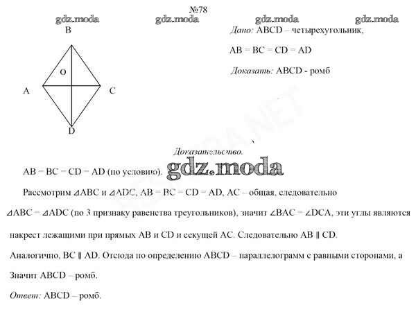 ОТВЕТ на задание № 78 Учебник по Геометрии 8 класс Казаков