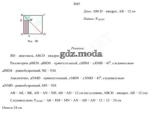 ОТВЕТ на задание № 85 Учебник по Геометрии 8 класс Казаков