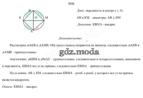 ОТВЕТ на задание № 86 Учебник по Геометрии 8 класс Казаков