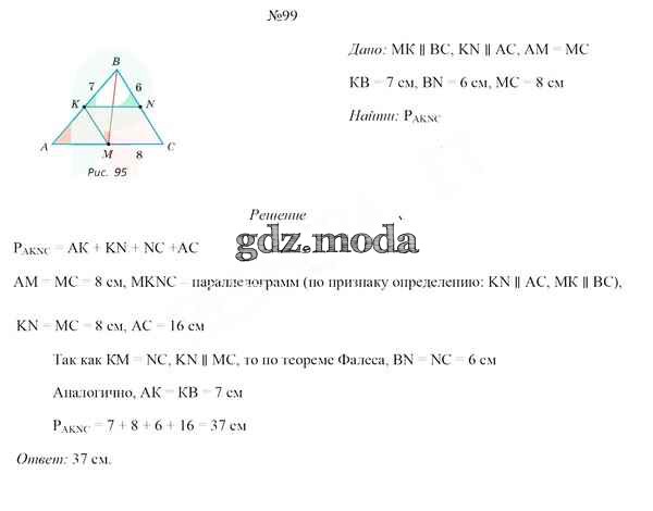 ОТВЕТ на задание № 99 Учебник по Геометрии 8 класс Казаков