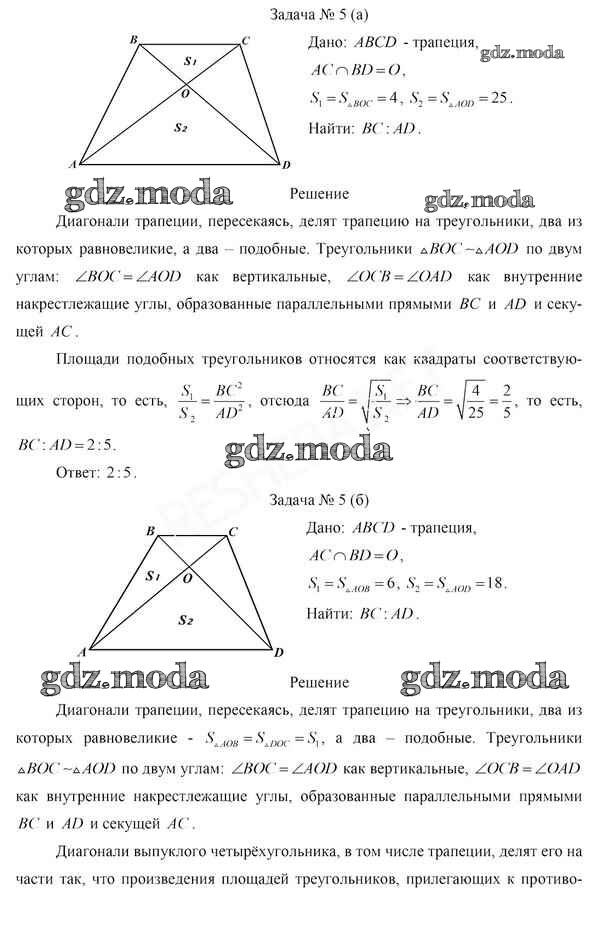 ОТВЕТ на задание № 5 Учебник по Геометрии 8 класс Казаков