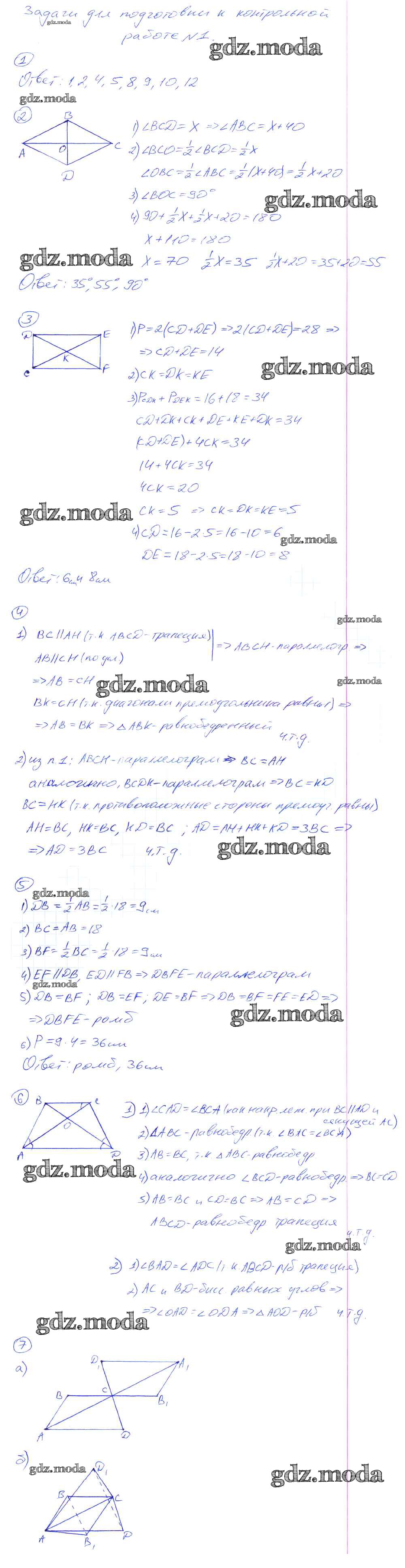 ОТВЕТ на задание № Задачи для подготовки к контрольной работе Контрольные работы по Геометрии 8 класс Мельникова УМК