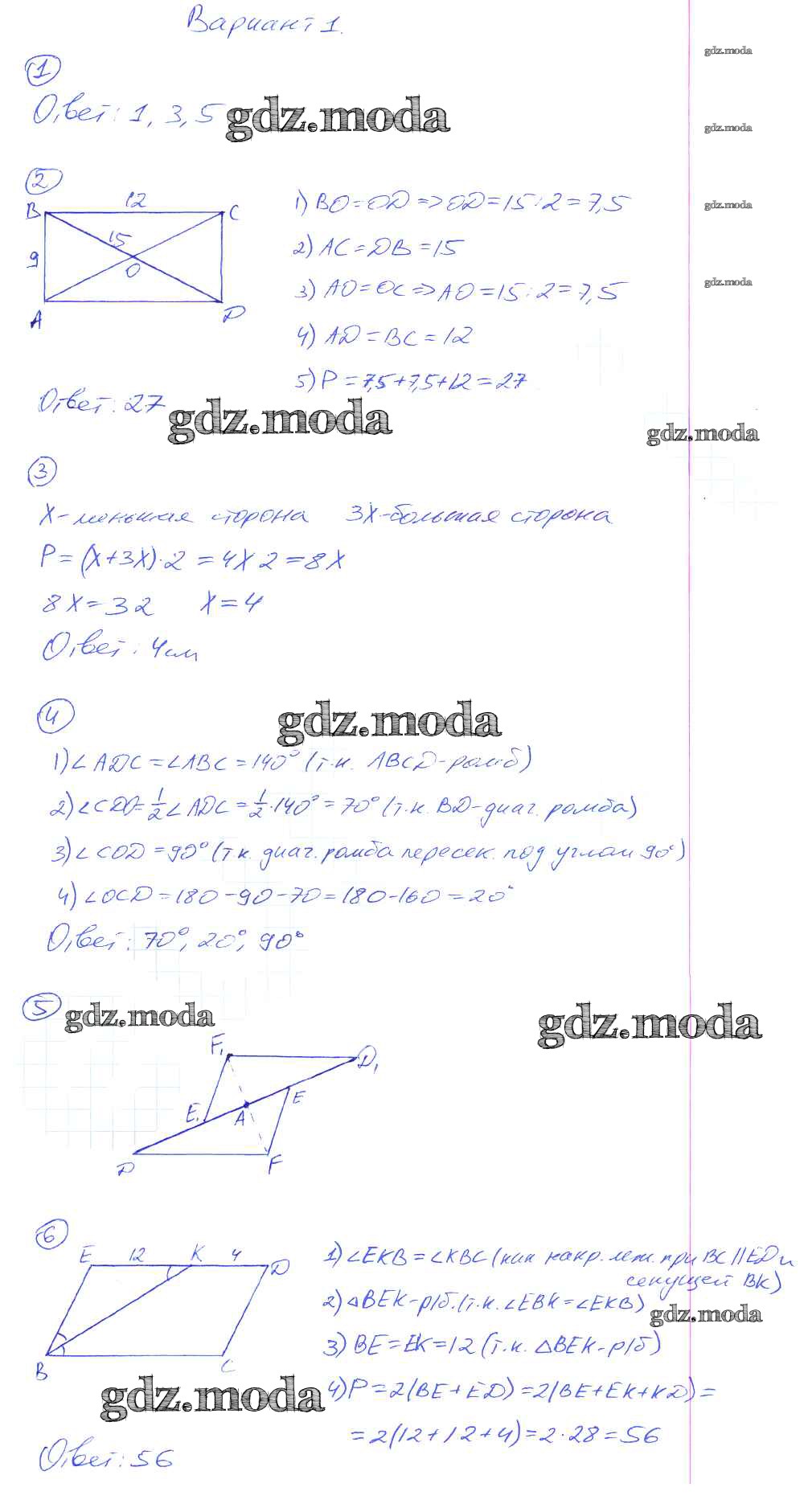 ГДЗ решение к заданию № Вариант №1 Геометрия 8 класс контрольные работы Мельникова Н.Б. (к уч. Атанасяна) Экзамен 2013 ФГОС бесплатно на гдз.мода!