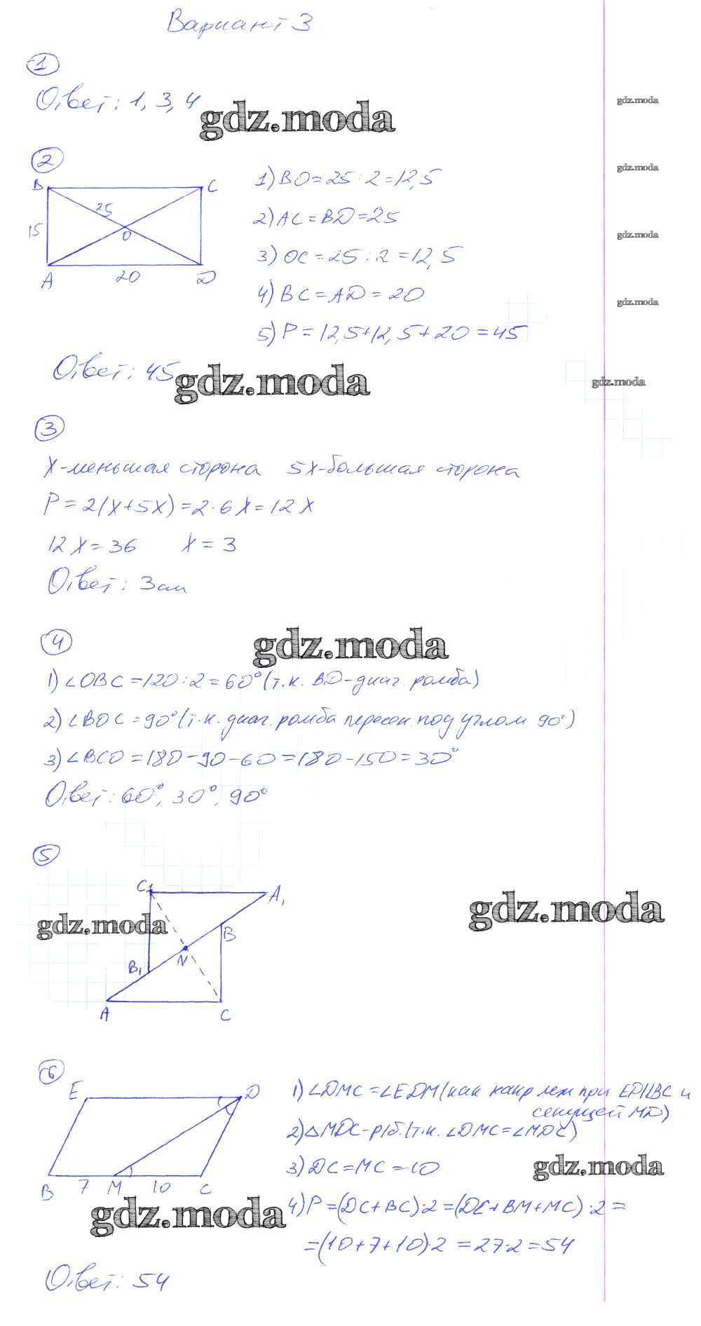 ОТВЕТ на задание № Вариант №3 Контрольные работы по Геометрии 8 класс Мельникова УМК