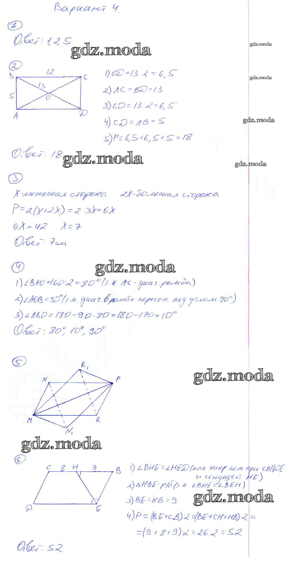 ГДЗ решение к заданию № Вариант №4 Геометрия 8 класс контрольные работы Мельникова Н.Б. (к уч. Атанасяна) Экзамен 2013 ФГОС бесплатно на гдз.мода!