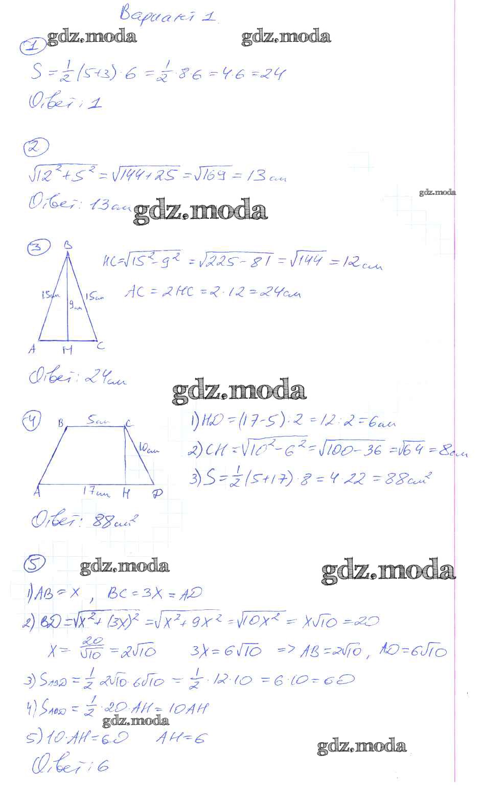 ОТВЕТ на задание № Вариант №1 Контрольные работы по Геометрии 8 класс Мельникова УМК