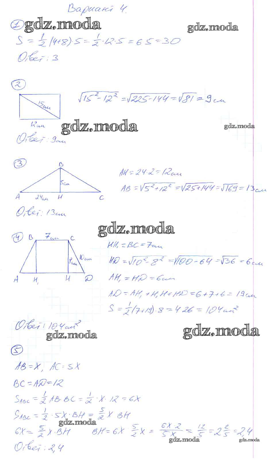 ОТВЕТ на задание № Вариант №4 Контрольные работы по Геометрии 8 класс Мельникова УМК