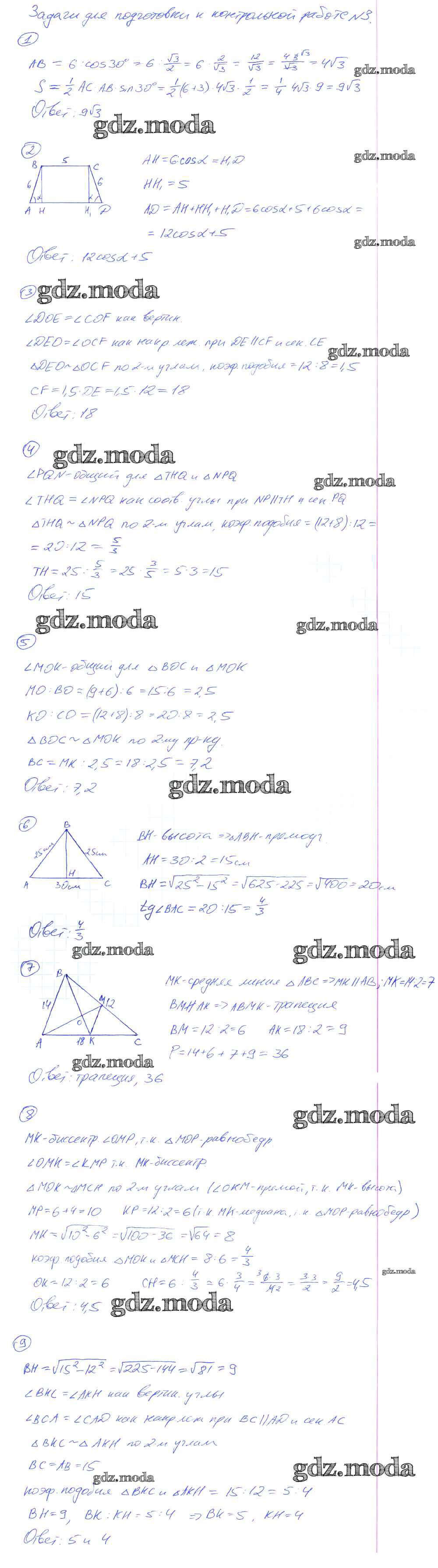 ОТВЕТ на задание № Задачи для подготовки к контрольной работе Контрольные работы по Геометрии 8 класс Мельникова УМК