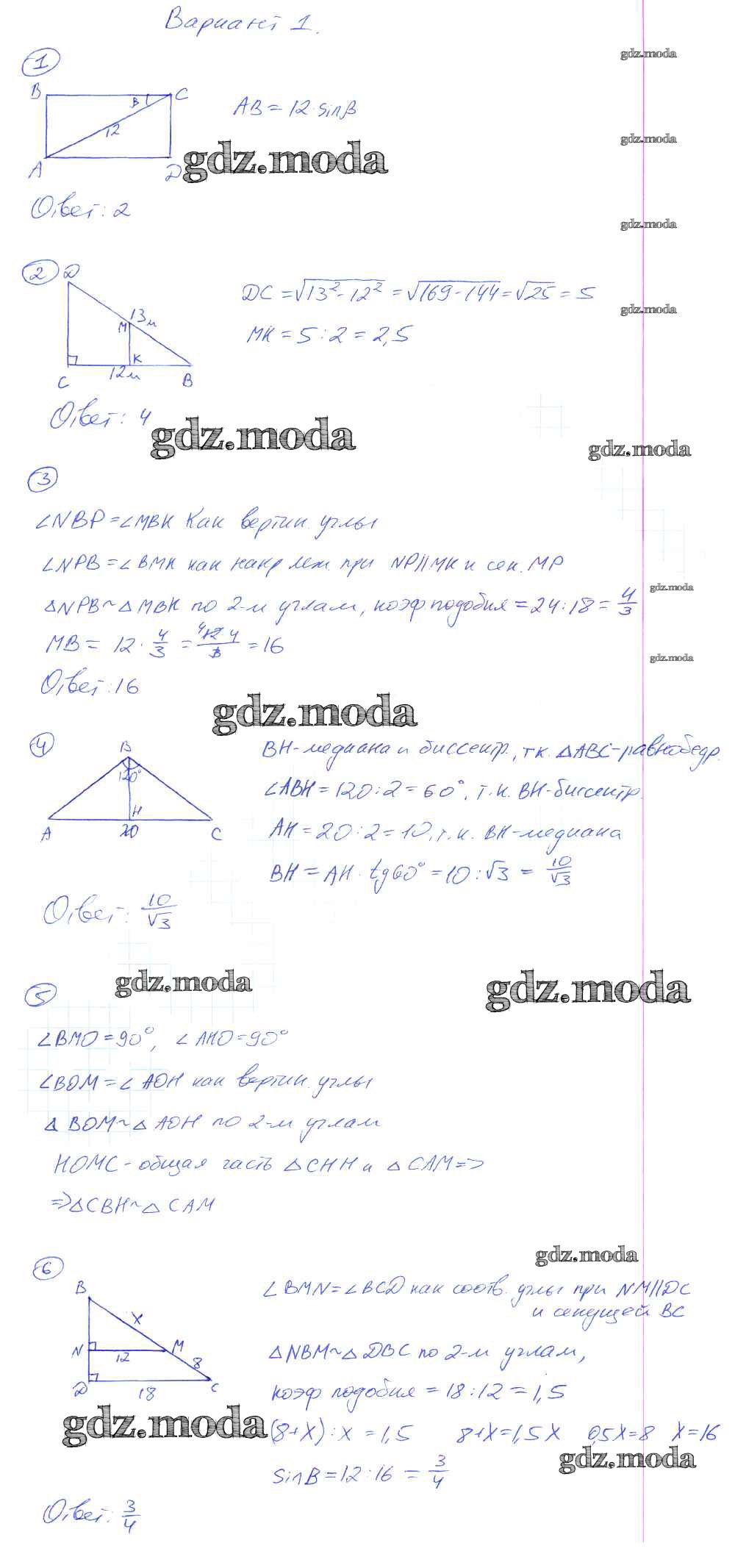 ОТВЕТ на задание № Вариант №1 Контрольные работы по Геометрии 8 класс Мельникова УМК