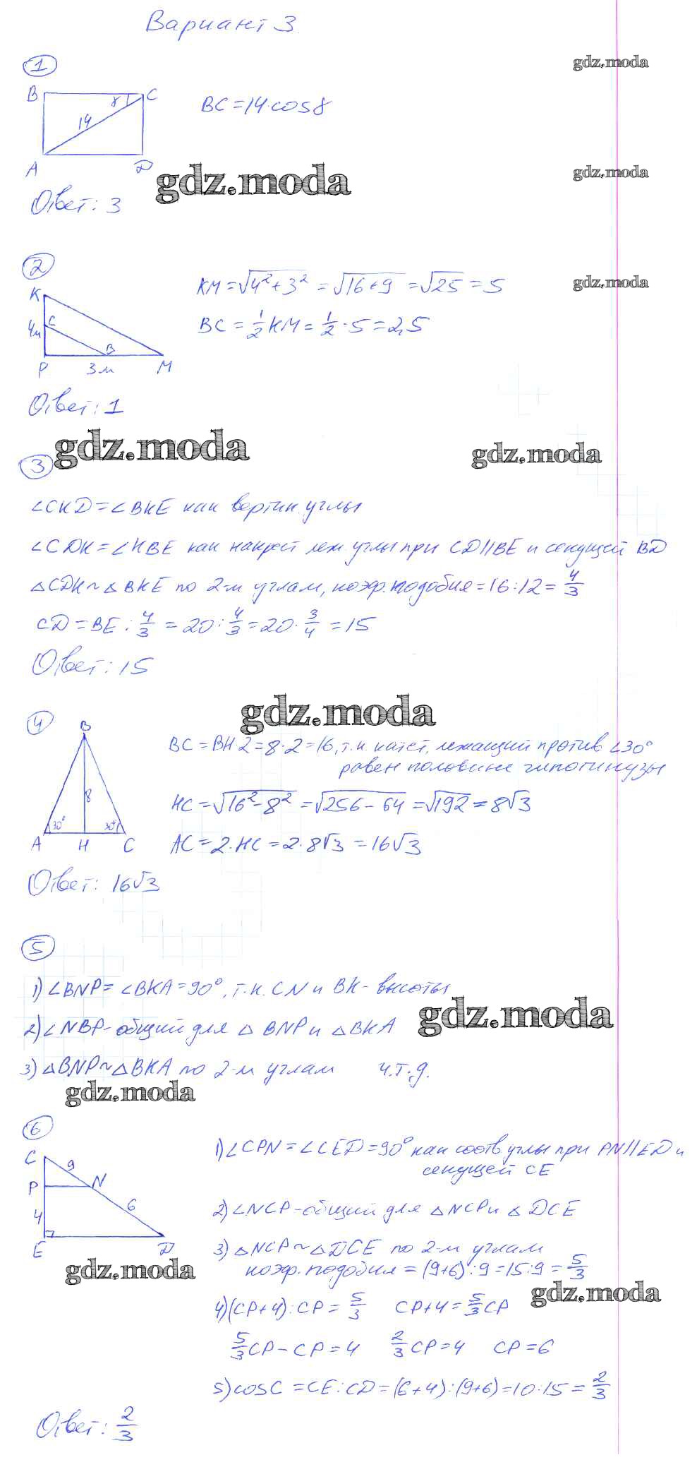 ОТВЕТ на задание № Вариант №3 Контрольные работы по Геометрии 8 класс Мельникова УМК