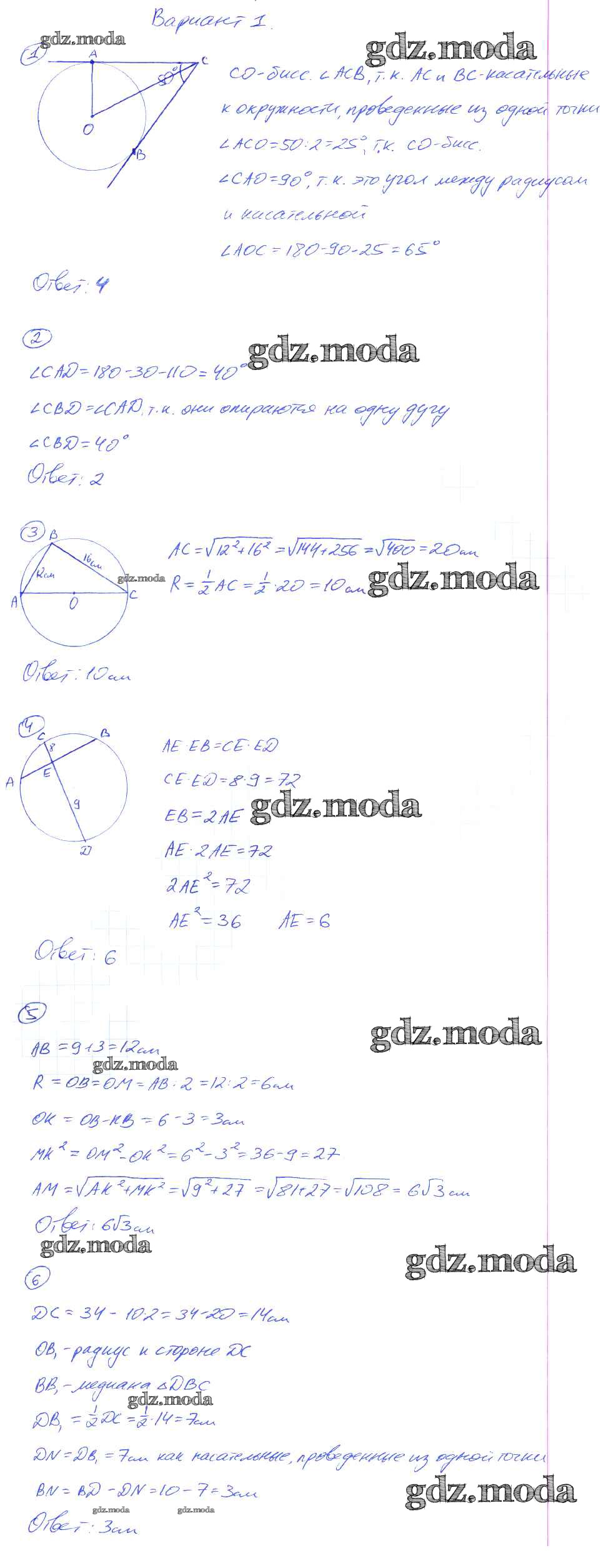 кр-4. Окружность / вариант №1