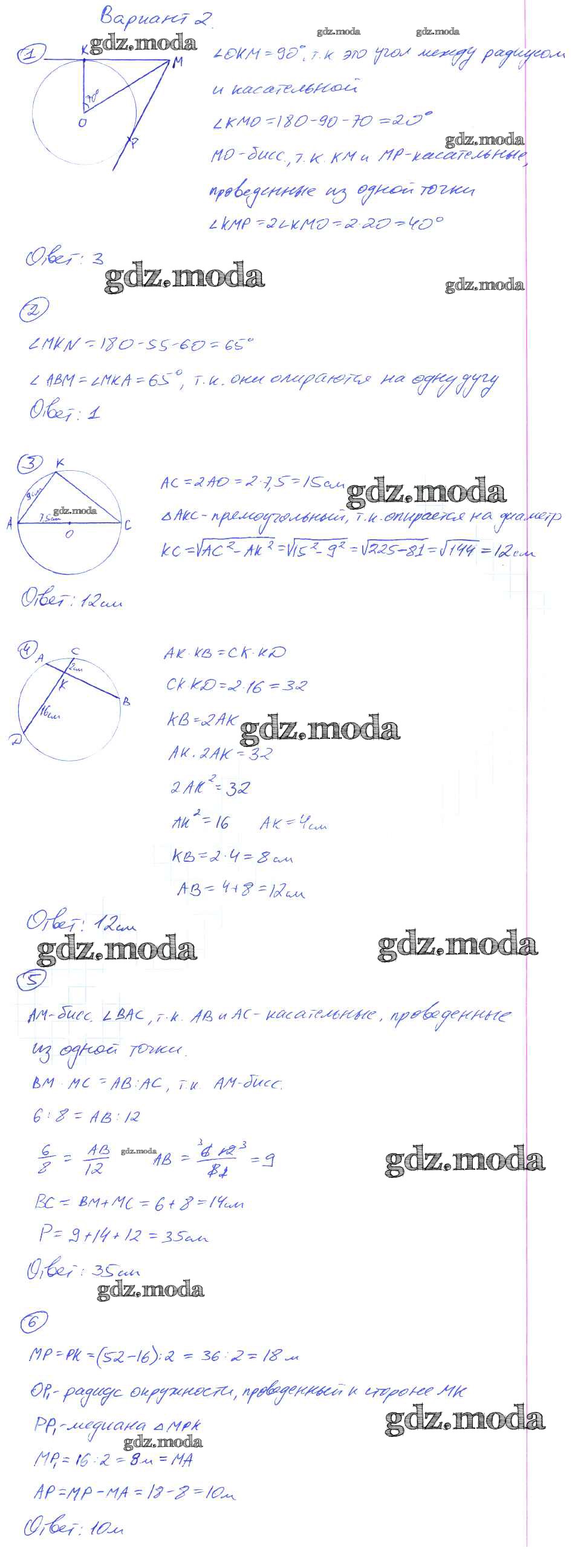 ОТВЕТ на задание № Вариант №2 Контрольные работы по Геометрии 8 класс Мельникова УМК