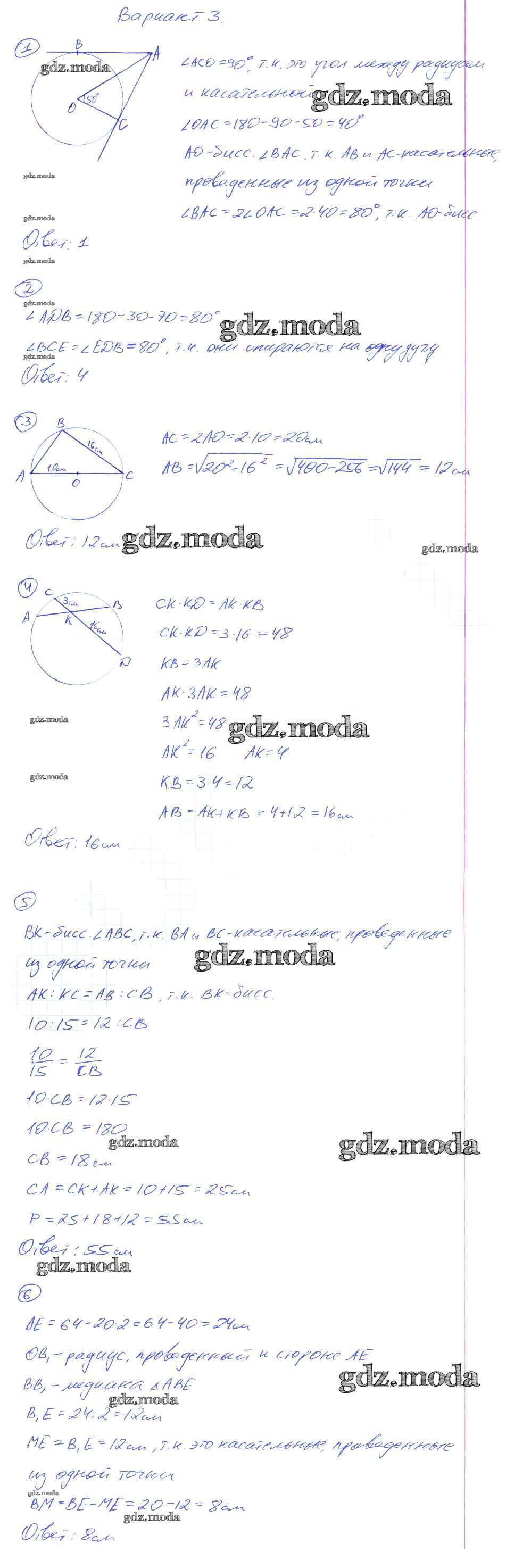 ОТВЕТ на задание № Вариант №3 Контрольные работы по Геометрии 8 класс Мельникова УМК