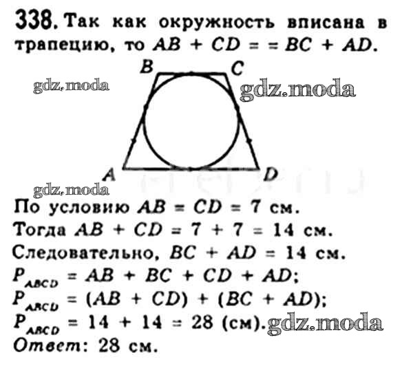 ОТВЕТ на задание № 338 Учебник по Геометрии 8 класс Мерзляк Алгоритм успеха
