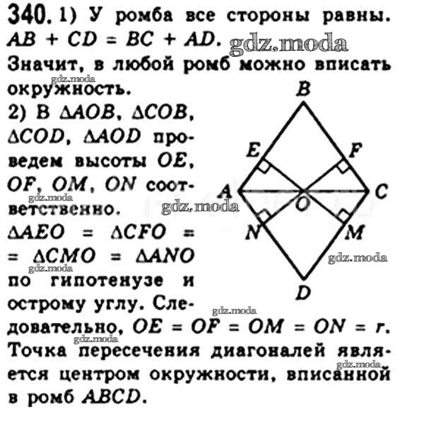 ОТВЕТ на задание № 340 Учебник по Геометрии 8 класс Мерзляк Алгоритм успеха