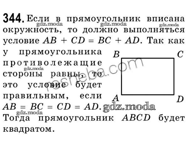 ОТВЕТ на задание № 344 Учебник по Геометрии 8 класс Мерзляк Алгоритм успеха