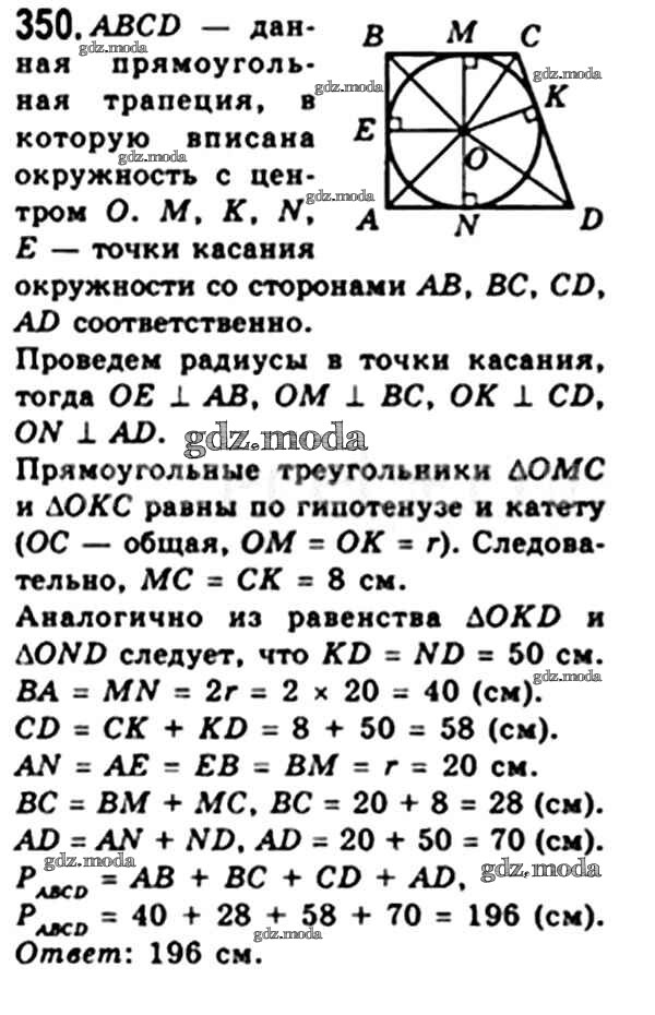 ОТВЕТ на задание № 350 Учебник по Геометрии 8 класс Мерзляк Алгоритм успеха