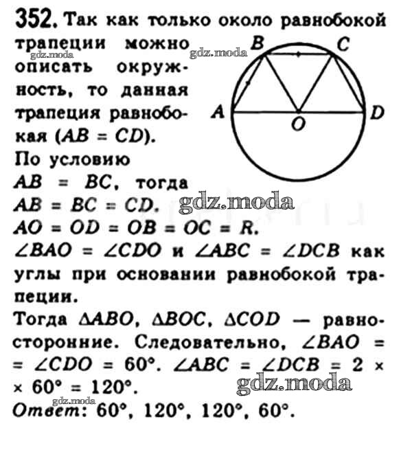 ОТВЕТ на задание № 352 Учебник по Геометрии 8 класс Мерзляк Алгоритм успеха