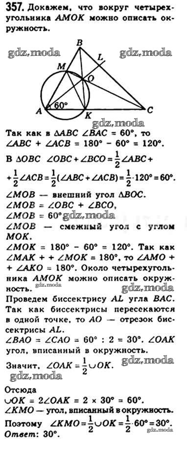 ОТВЕТ на задание № 357 Учебник по Геометрии 8 класс Мерзляк Алгоритм успеха