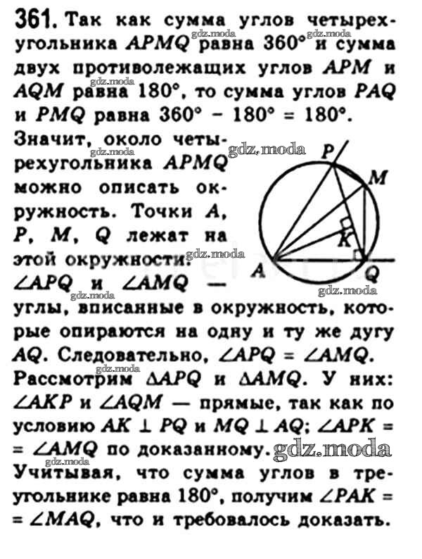 ОТВЕТ на задание № 361 Учебник по Геометрии 8 класс Мерзляк Алгоритм успеха