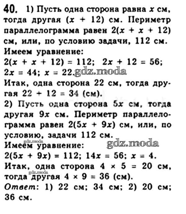 ОТВЕТ на задание № 40 Учебник по Геометрии 8 класс Мерзляк Алгоритм успеха