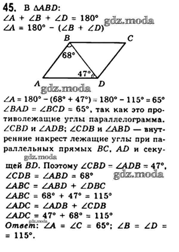 ОТВЕТ на задание № 45 Учебник по Геометрии 8 класс Мерзляк Алгоритм успеха