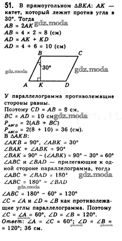 ОТВЕТ на задание № 51 Учебник по Геометрии 8 класс Мерзляк Алгоритм успеха