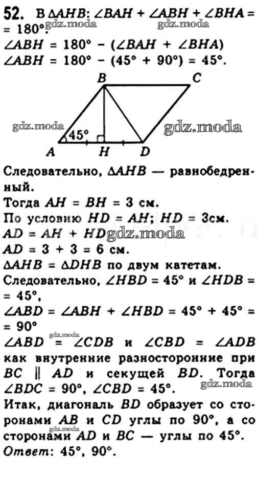 ОТВЕТ на задание № 52 Учебник по Геометрии 8 класс Мерзляк Алгоритм успеха