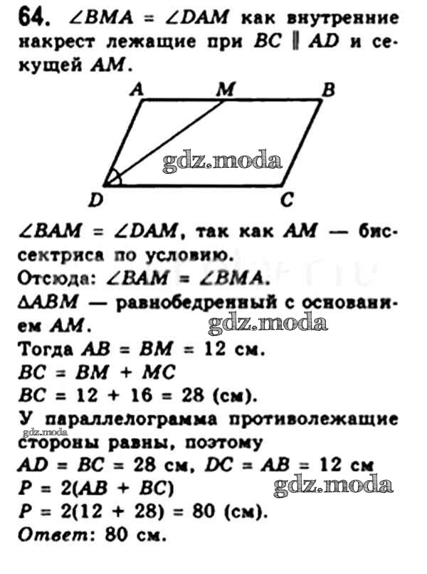 ОТВЕТ на задание № 64 Учебник по Геометрии 8 класс Мерзляк Алгоритм успеха