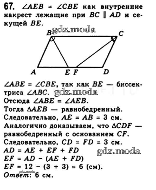 ОТВЕТ на задание № 67 Учебник по Геометрии 8 класс Мерзляк Алгоритм успеха