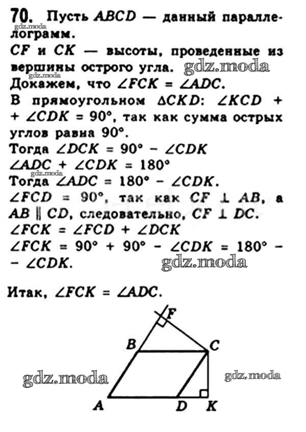 ОТВЕТ на задание № 70 Учебник по Геометрии 8 класс Мерзляк Алгоритм успеха